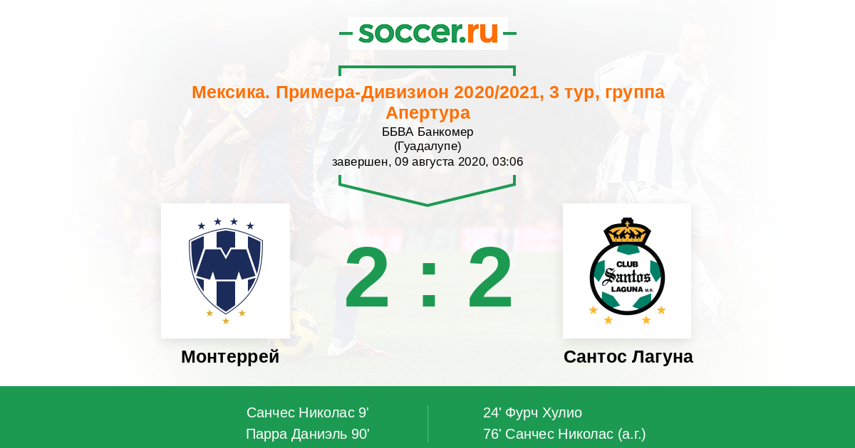 Монтеррей - Сантос Лагуна: обзор матча 9 августа 2020