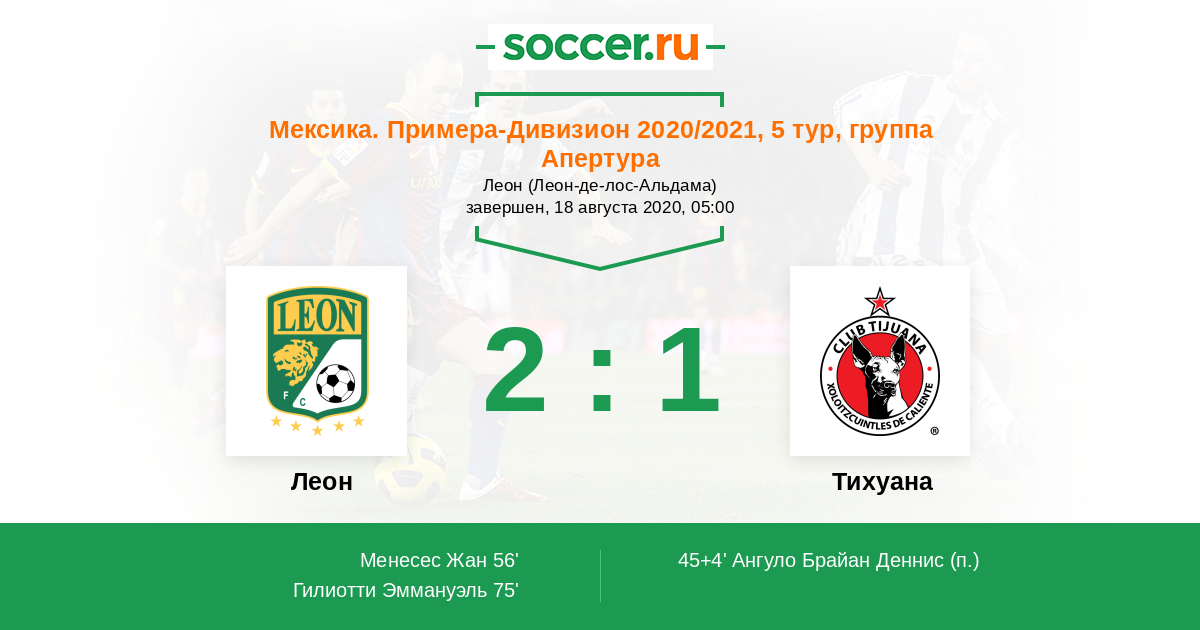 Леон - Тихуана: обзор матча 18 августа 2020