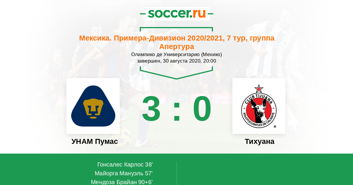 УНАМ Пумас - Тихуана: обзор матча 30 августа 2020