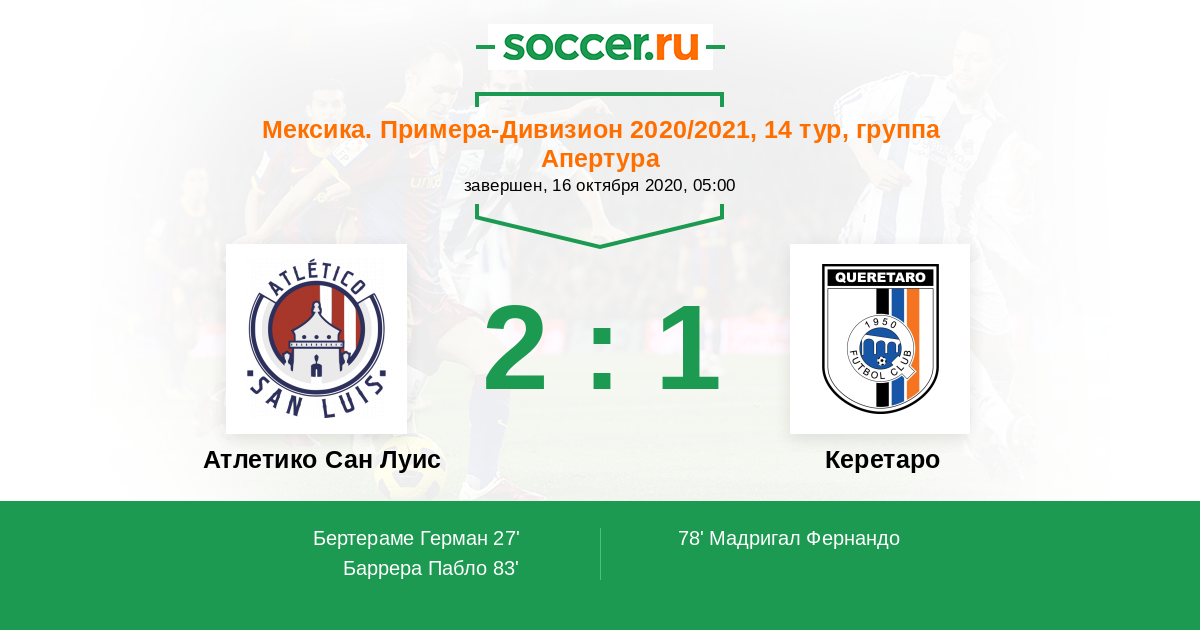 Атлетико Сан Луис - Керетаро: обзор матча 16 октября 2020