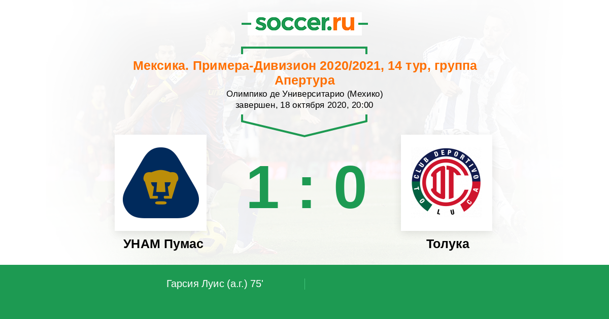 УНАМ Пумас - Толука: обзор матча 18 октября 2020