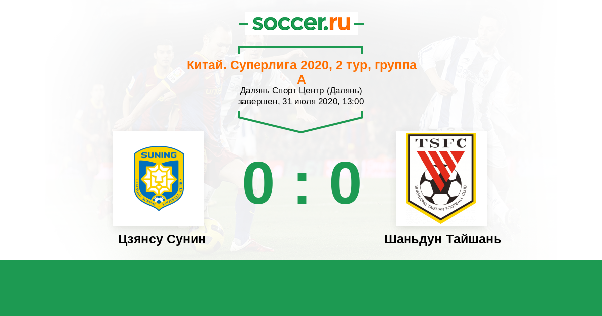 Цзянсу Сунин - Шаньдун Тайшань: обзор матча 31 июля 2020