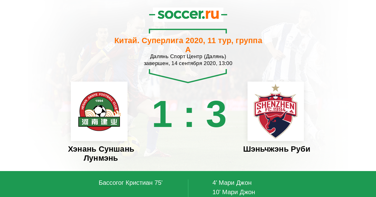 Хэнань Суншань Лунмэнь - Шэньчжэнь Руби: обзор матча 14 сентября 2020