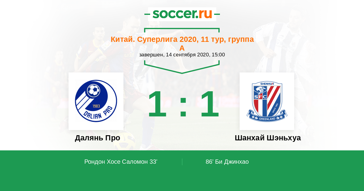 Далянь Про - Шанхай Шэньхуа: обзор матча 14 сентября 2020