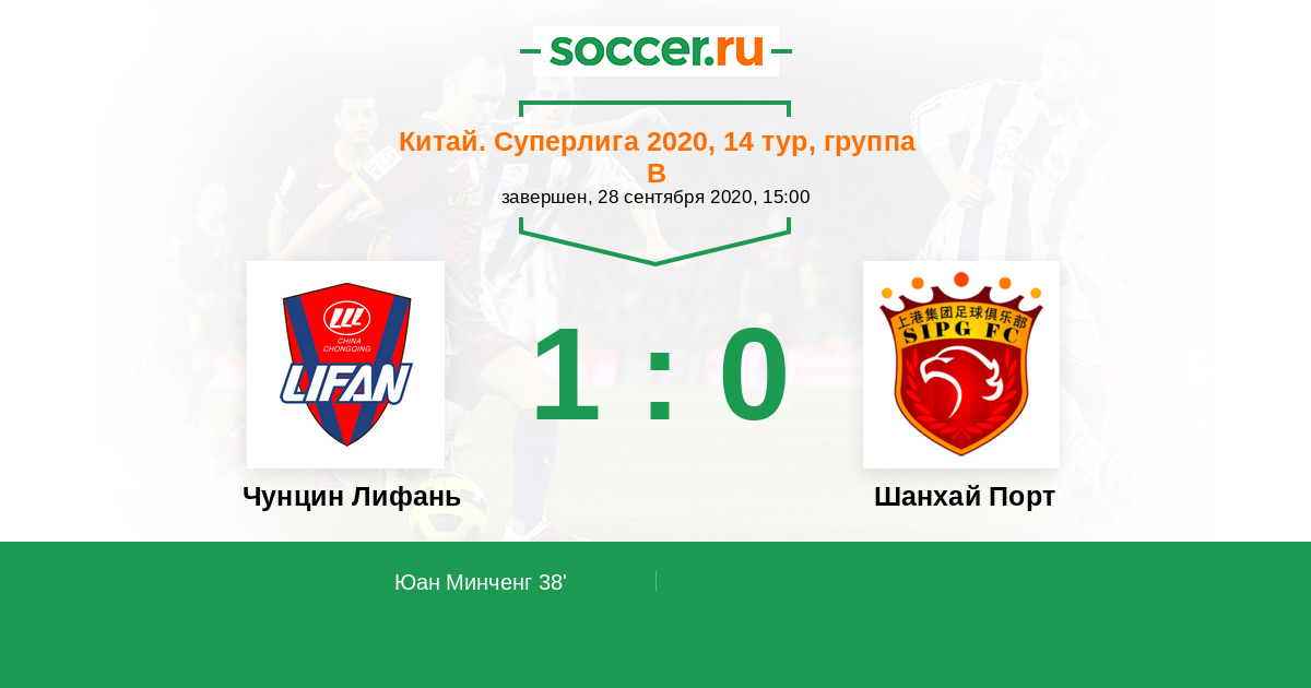 Чунцин Лифань - Шанхай Порт: обзор матча 28 сентября 2020