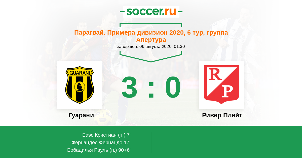 Гуарани - Ривер Плейт: обзор матча 6 августа 2020