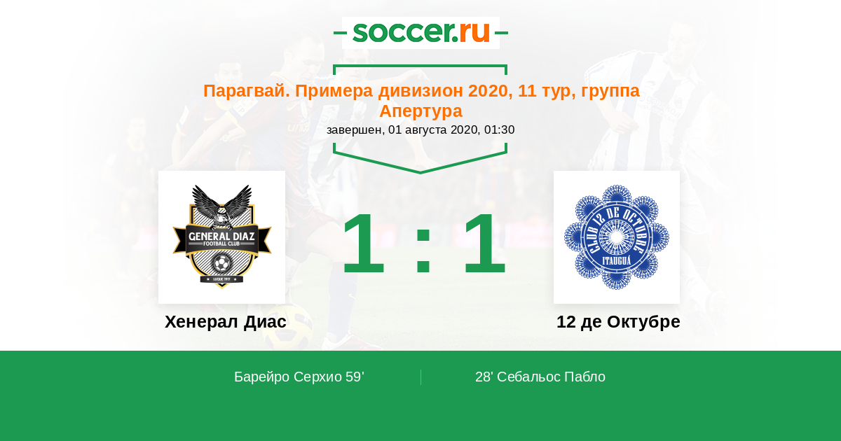 Хенерал Диас - 12 де Октубре: обзор матча 1 августа 2020