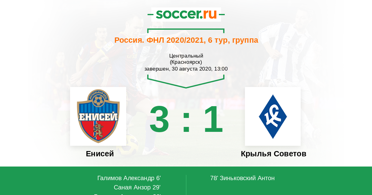 Енисей - Крылья Советов: обзор матча 30 августа 2020