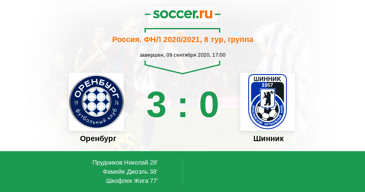 Оренбург - Шинник: обзор матча 9 сентября 2020