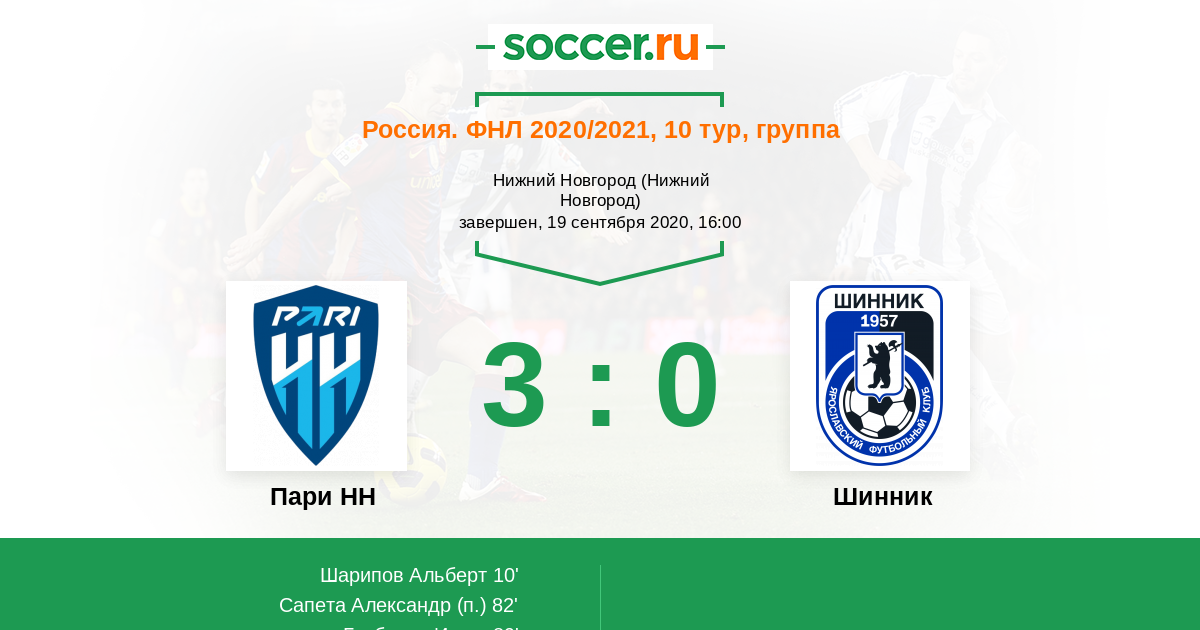 Пари НН - Шинник: обзор матча 19 сентября 2020