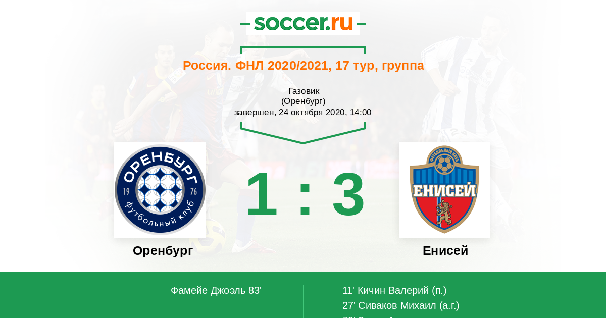 Оренбург - Енисей: обзор матча 24 октября 2020