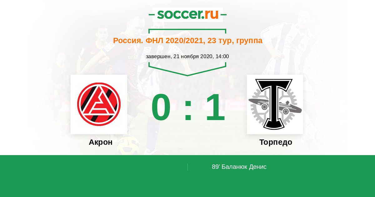 Акрон - Торпедо: обзор матча 21 ноября 2020
