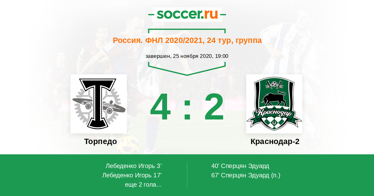 Торпедо - Краснодар-2: обзор матча 25 ноября 2020
