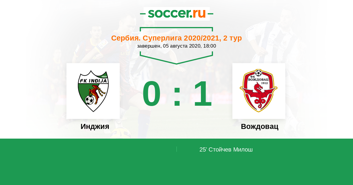 Инджия - Вождовац: обзор матча 5 августа 2020