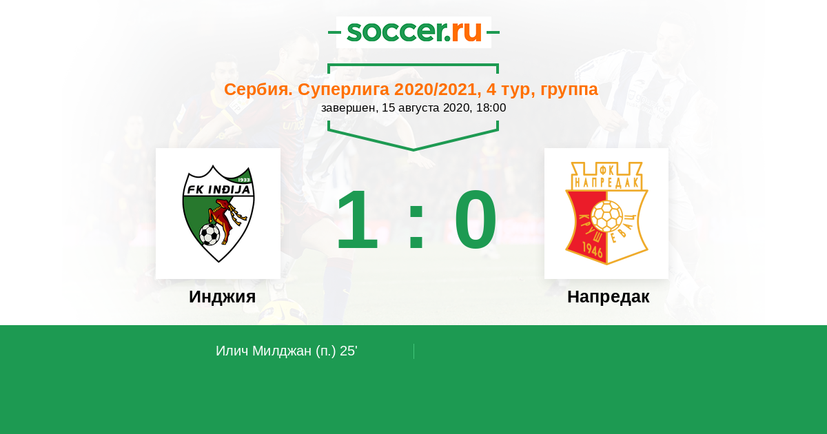 Инджия - Напредак: обзор матча 15 августа 2020