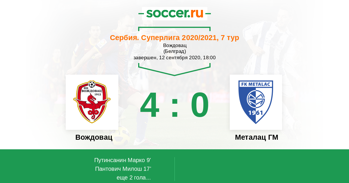 Вождовац - Металац ГМ: обзор матча 12 сентября 2020