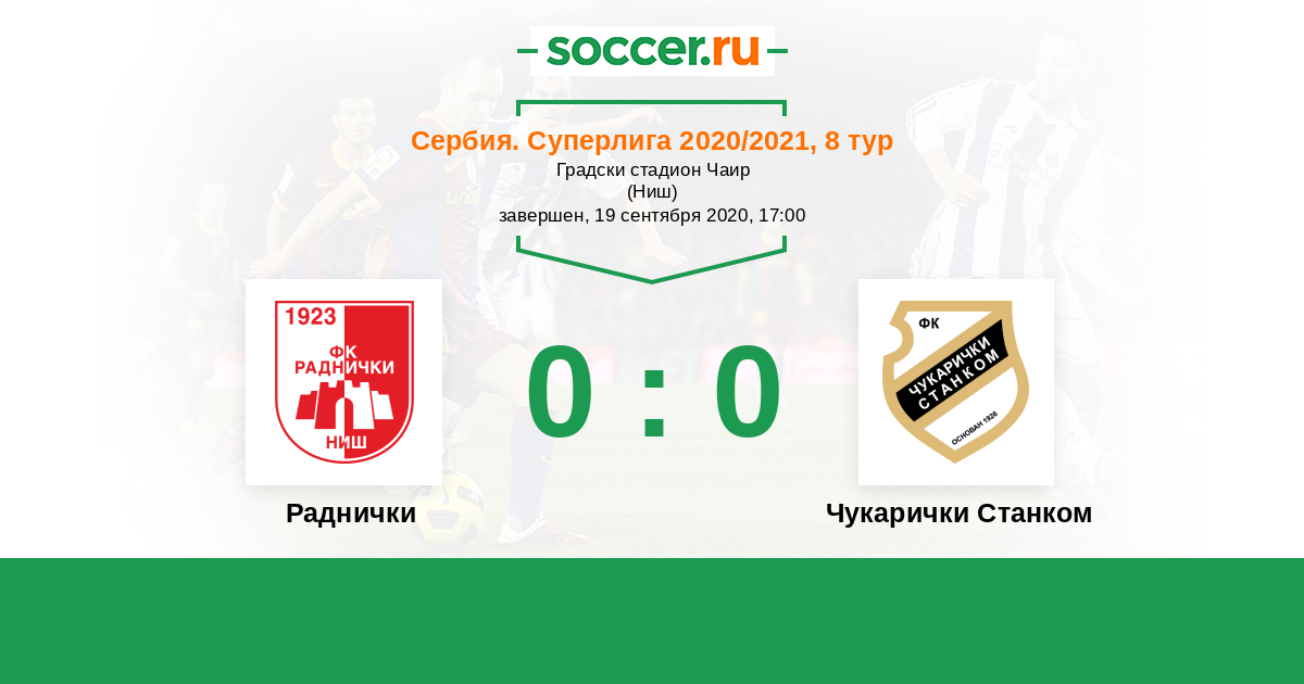 Раднички - Чукарички Станком: обзор матча 19 сентября 2020
