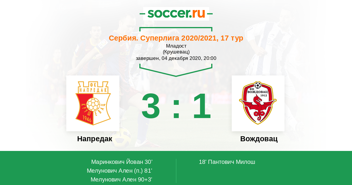 Напредак - Вождовац: обзор матча 4 декабря 2020