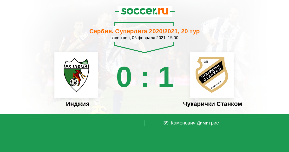 Инджия - Чукарички Станком: обзор матча 6 февраля 2021