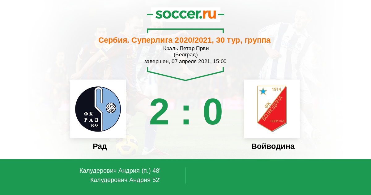 Рад - Войводина: обзор матча 7 апреля 2021
