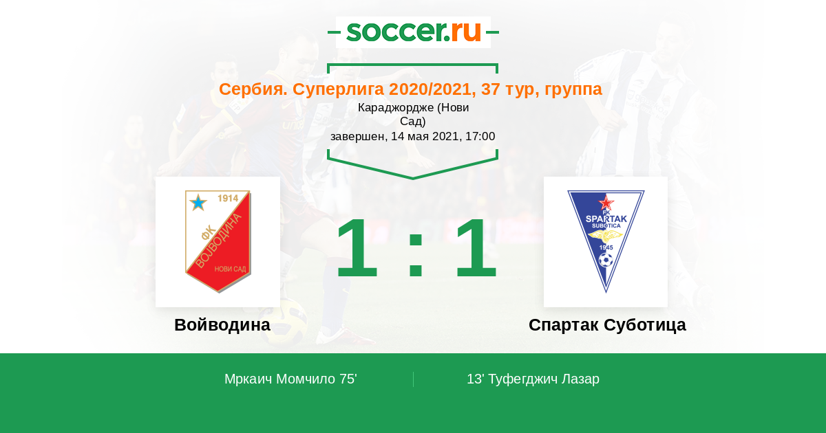 Войводина - Спартак Суботица: обзор матча 14 мая 2021