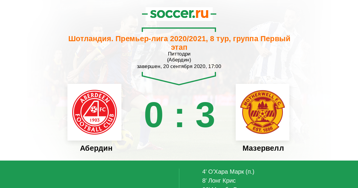 Абердин - Мазервелл: обзор матча 20 сентября 2020
