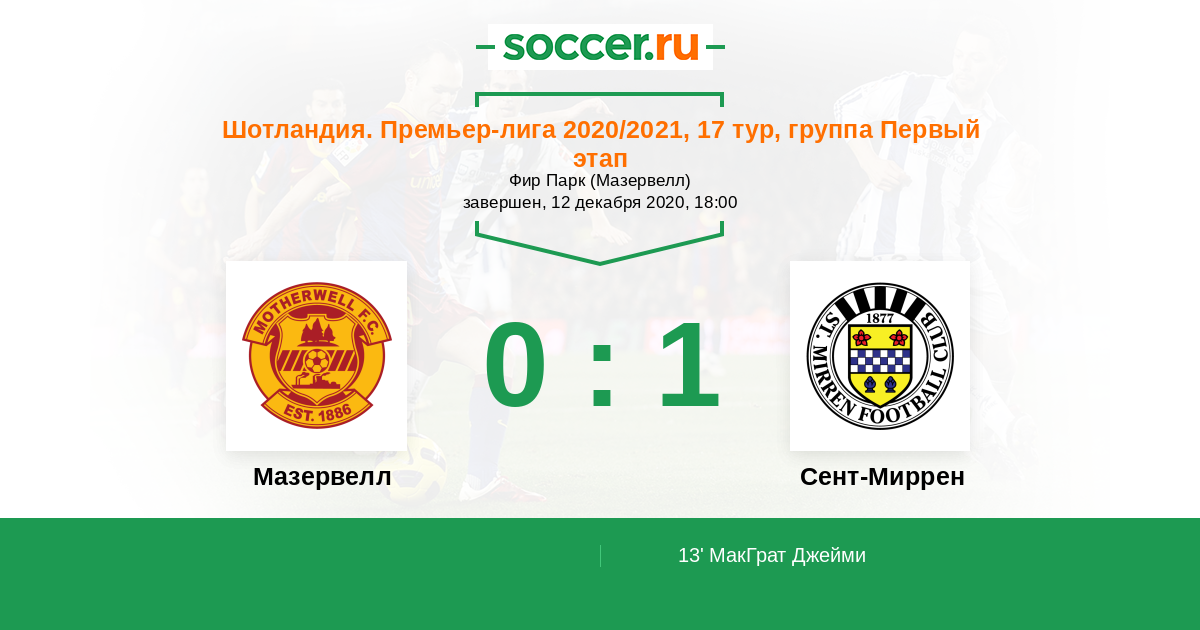 Мазервелл - Сент-Миррен: обзор матча 12 декабря 2020