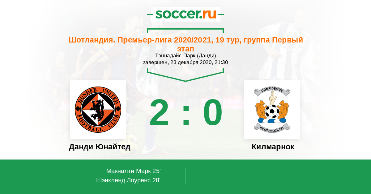 Данди Юнайтед - Килмарнок: обзор матча 23 декабря 2020