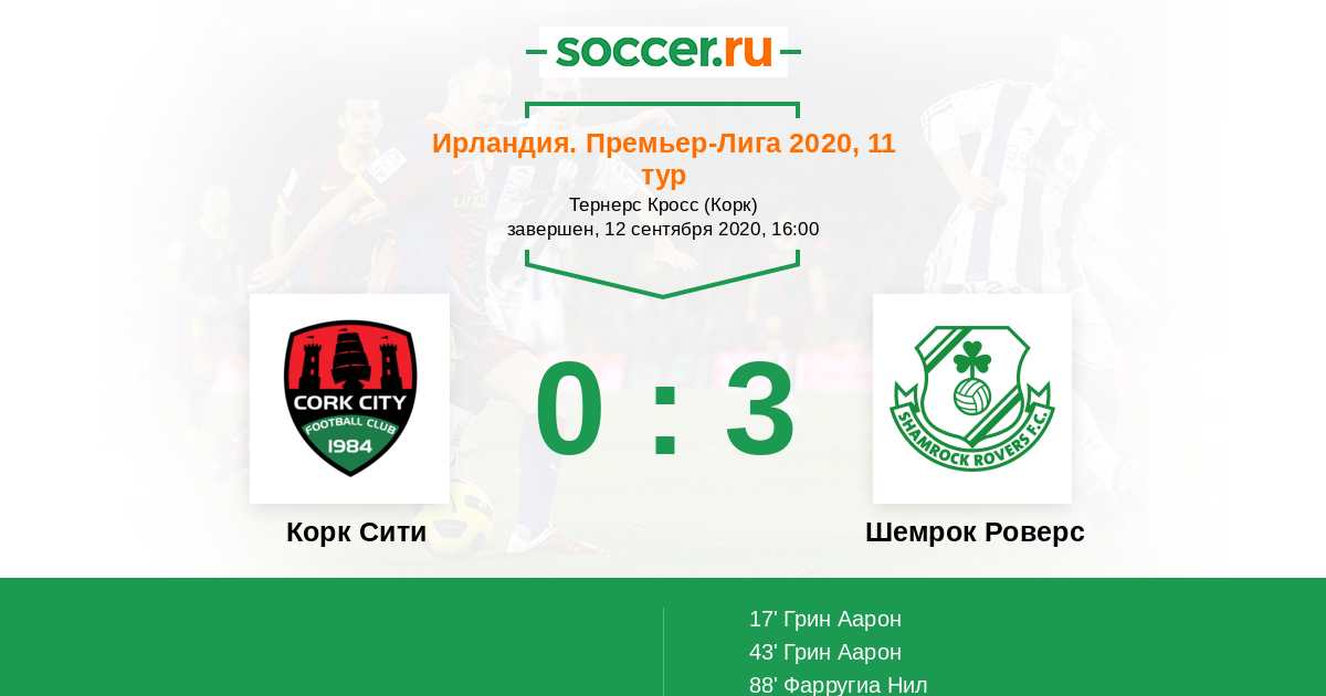 Корк Сити - Шемрок Роверс: обзор матча 12 сентября 2020