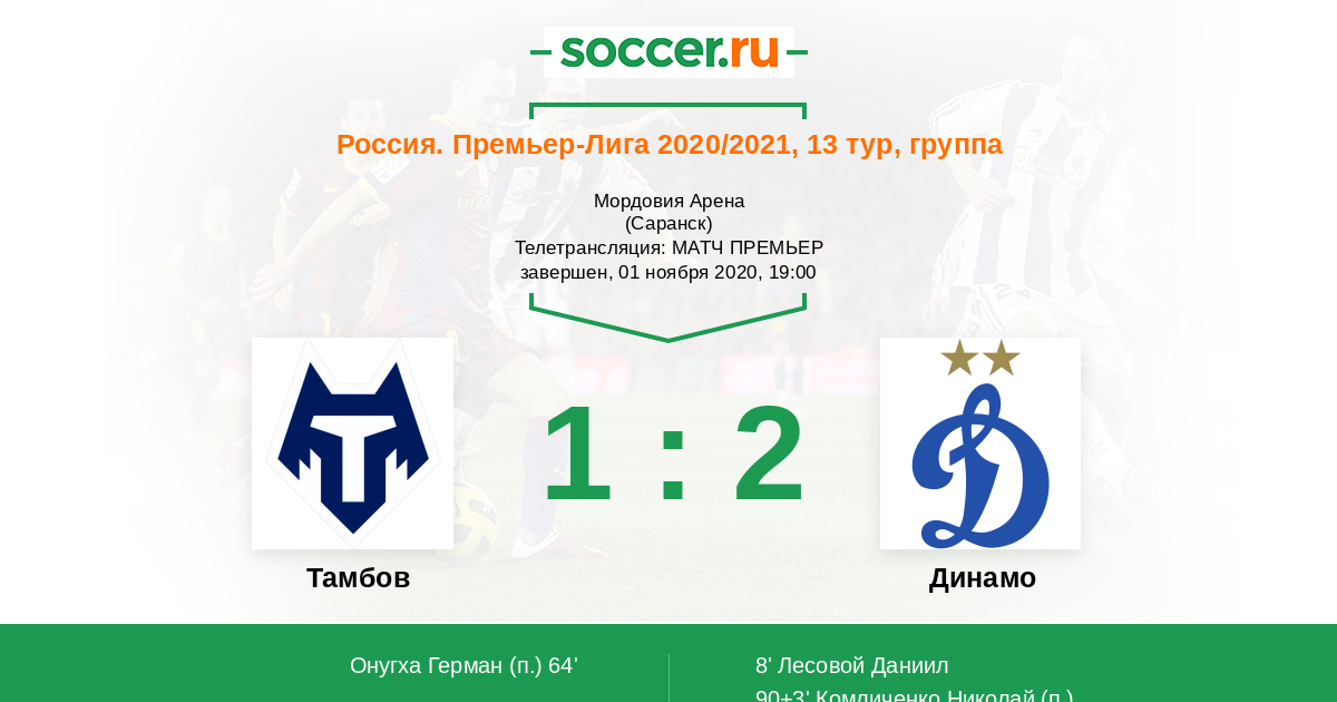 Тамбов действительно сегодня показал в игре против Динамо что не зря они носят имя волки, цеплялись и руками и ногтями вгрызались в буквальном смысле в игру. Смогли сравнять счёт и полчаса играли без двух удалённых игроков. Динамо нужно быть готовыми что просто так никто дарить победу не будет, блогодаря Шунину который отстоял победу для Динамо, в этой игре. А Тамбову респект что до последней минуты играли как волки в меньшинстве. Удачи в следующих матчах.