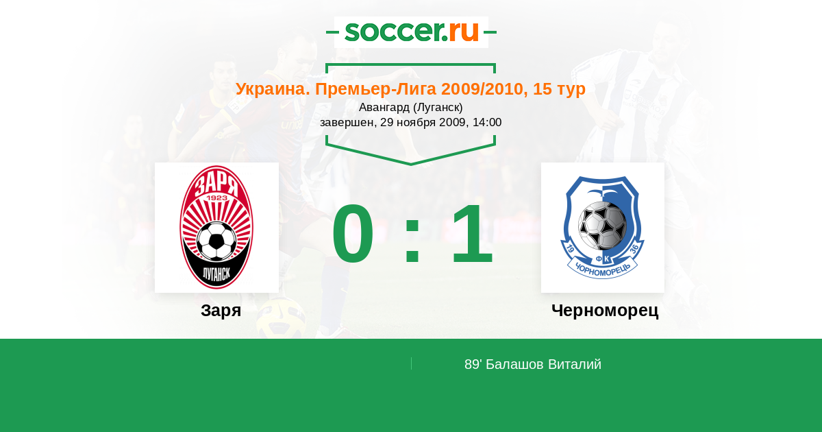 Заря - Черноморец: обзор матча 29 ноября 2009