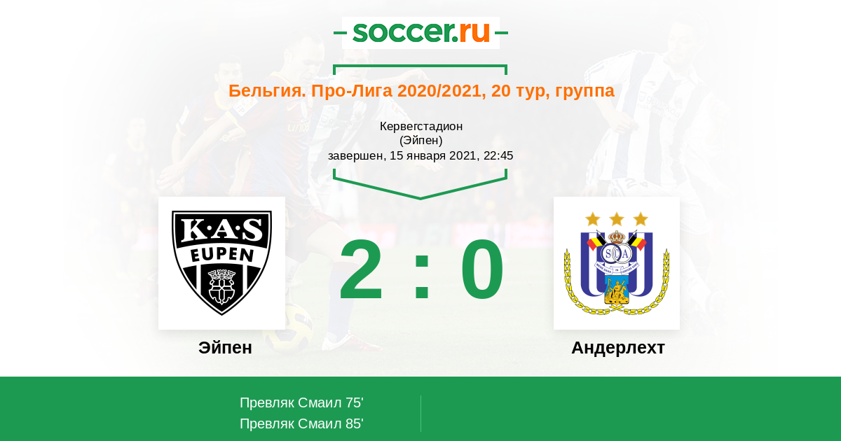 Эйпен - Андерлехт: обзор матча 15 января 2021