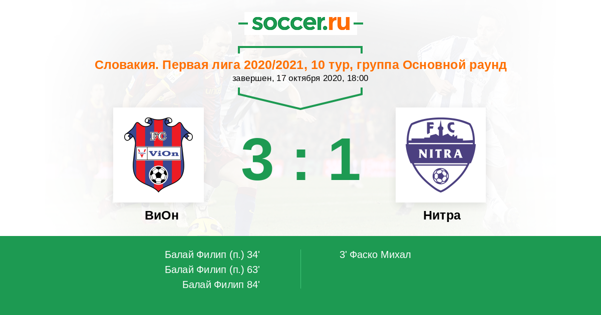 ВиОн - Нитра: обзор матча 17 октября 2020