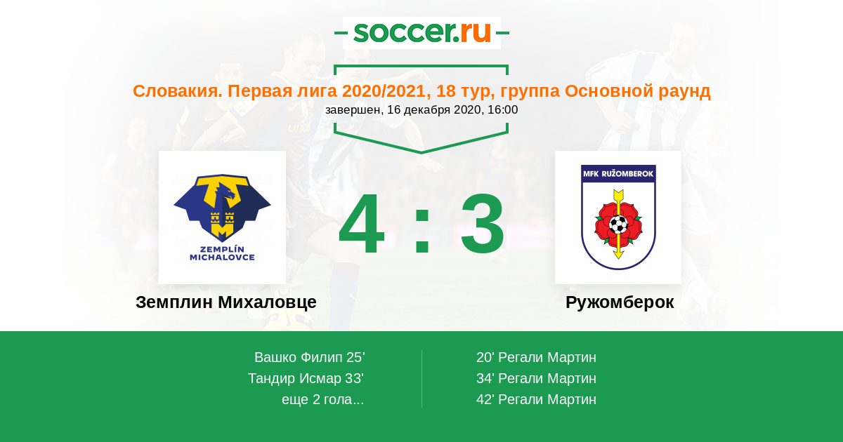 Земплин Михаловце - Ружомберок: обзор матча 16 декабря 2020