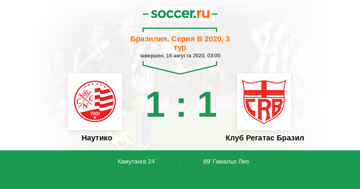Наутико - Клуб Регатас Бразил: обзор матча 16 августа 2020