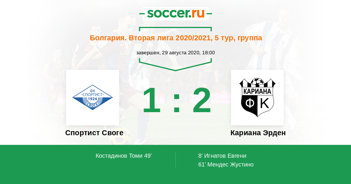 Спортист Своге - Кариана Эрден: обзор матча 29 августа 2020