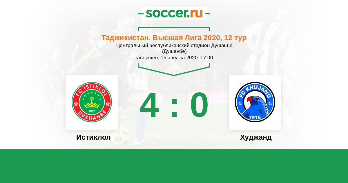 Истиклол - Худжанд: обзор матча 15 августа 2020