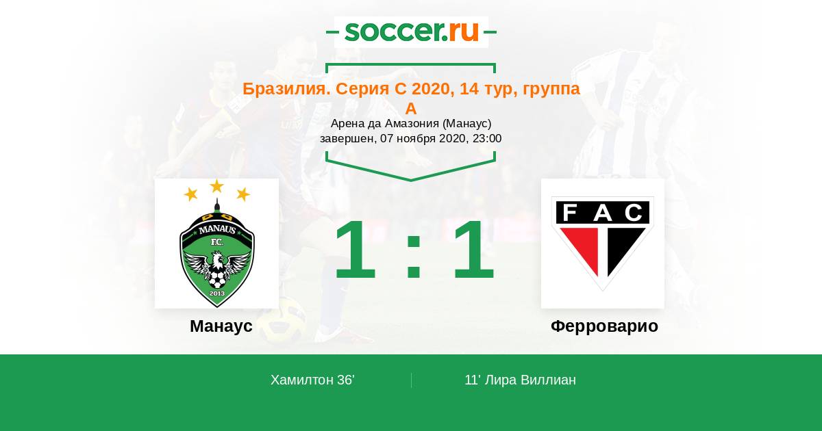 Манаус - Ферроварио: обзор матча 7 ноября 2020