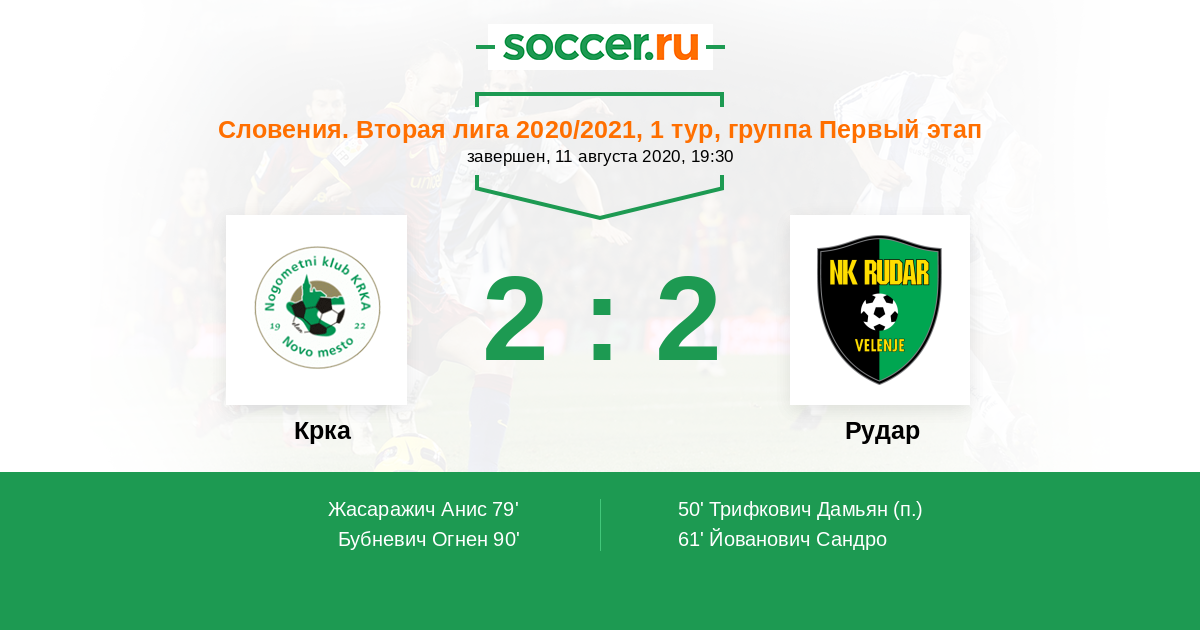 Крка - Рудар: обзор матча 11 августа 2020
