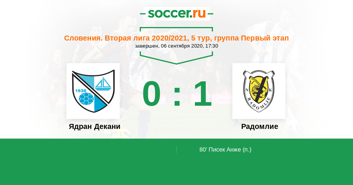 Ядран Декани - Радомлие: обзор матча 6 сентября 2020