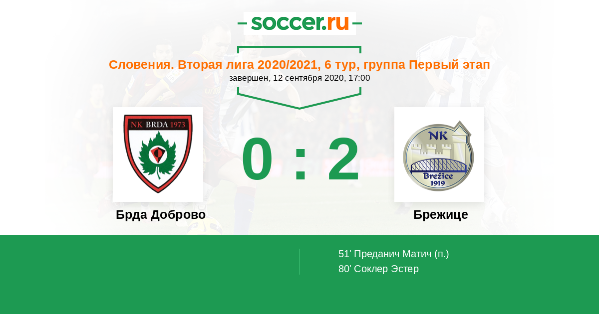 Брда Доброво - Брежице: обзор матча 12 сентября 2020