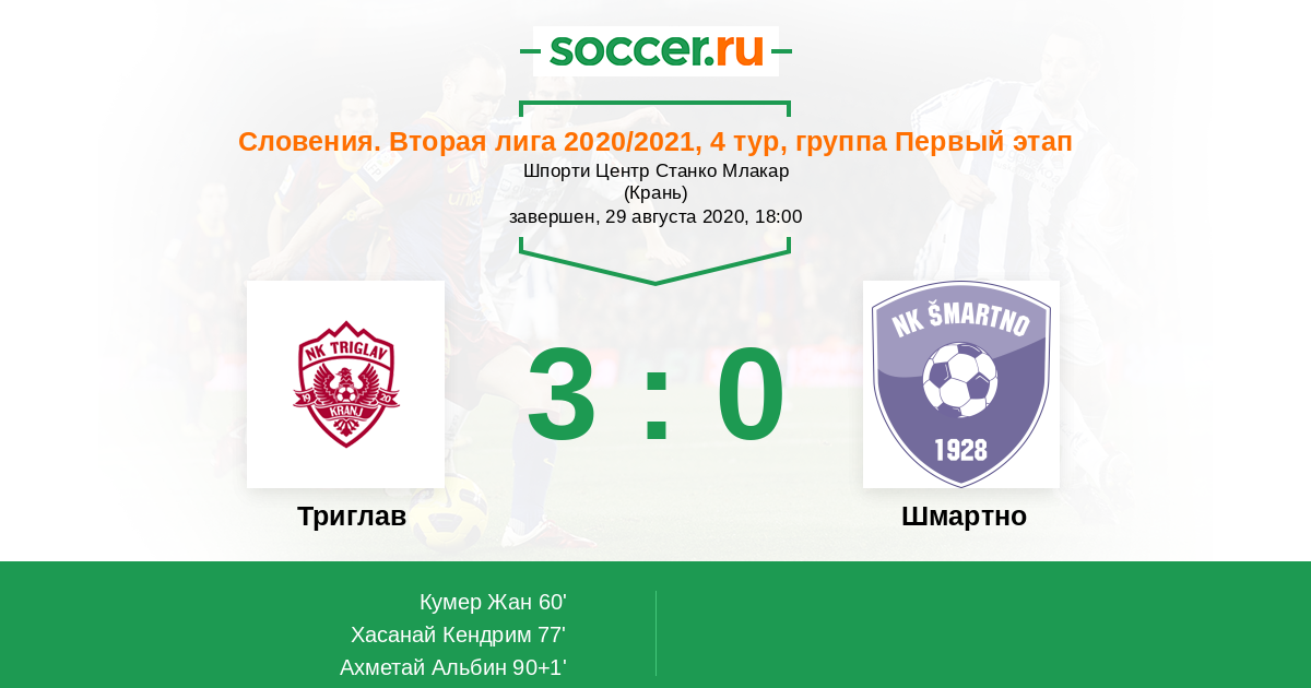 Триглав - Шмартно: обзор матча 29 августа 2020