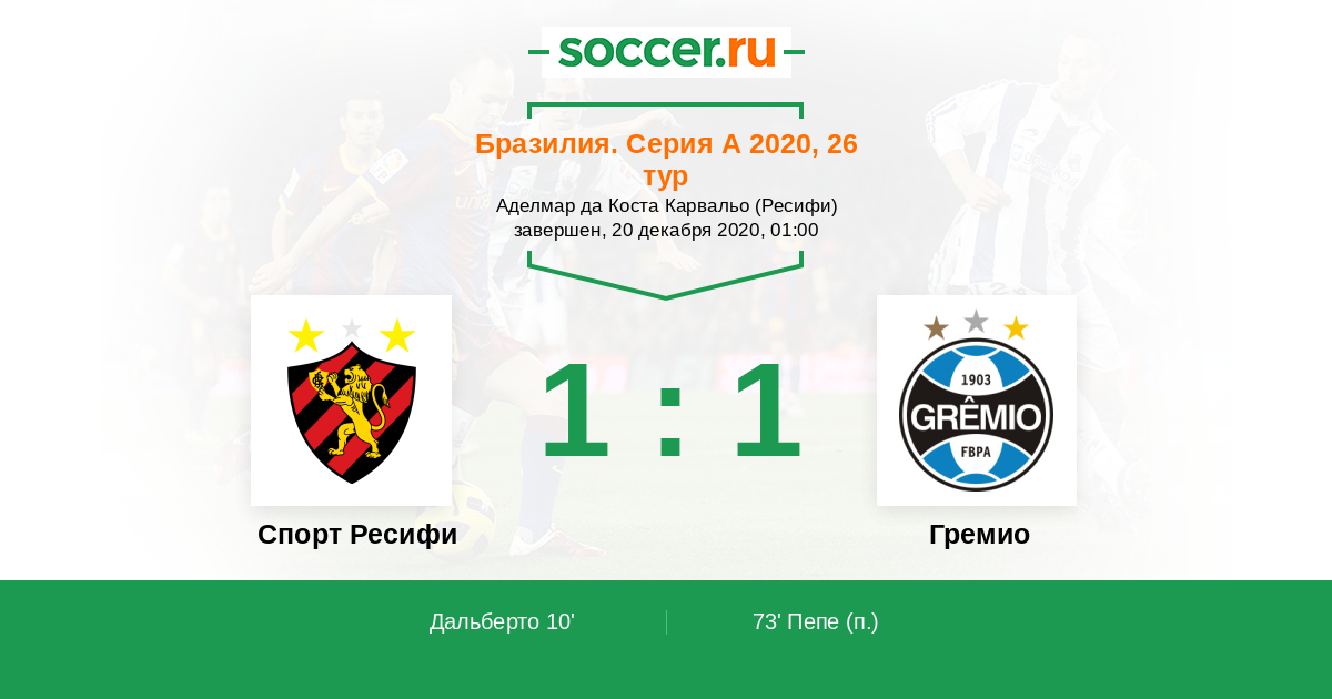 Спорт Ресифи - Гремио: обзор матча 20 декабря 2020