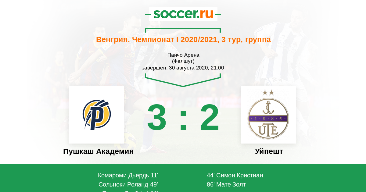 Пушкаш Академия - Уйпешт: обзор матча 30 августа 2020