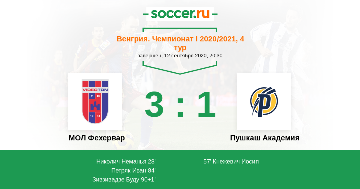МОЛ Фехервар - Пушкаш Академия: обзор матча 12 сентября 2020