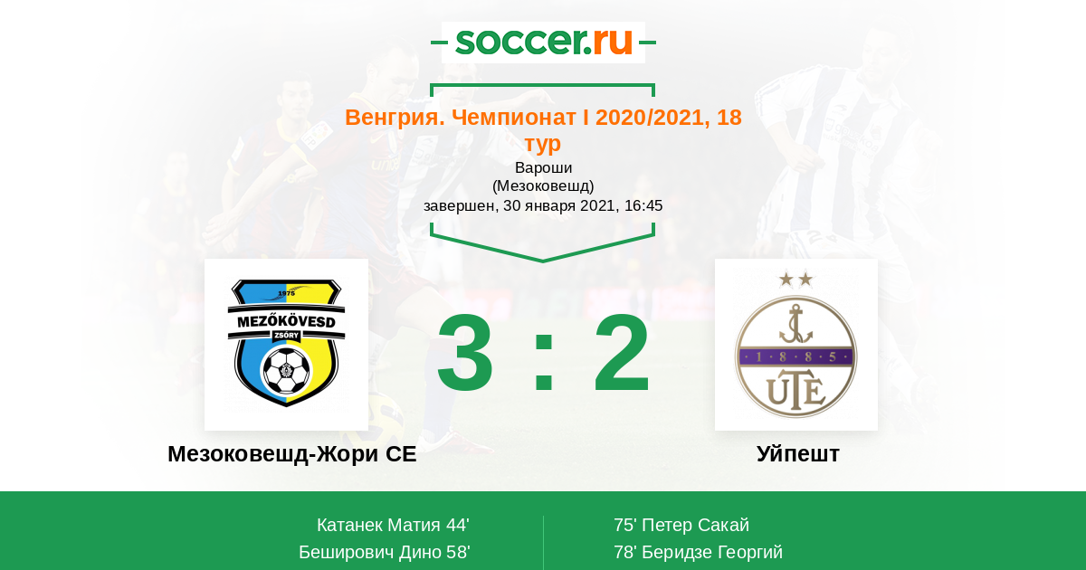 Мезоковешд-Жори СЕ - Уйпешт: обзор матча 30 января 2021
