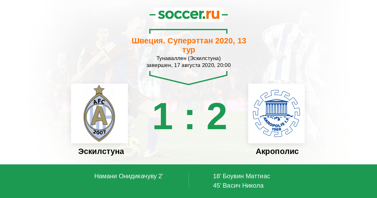 Эскилстуна - Акрополис: обзор матча 17 августа 2020
