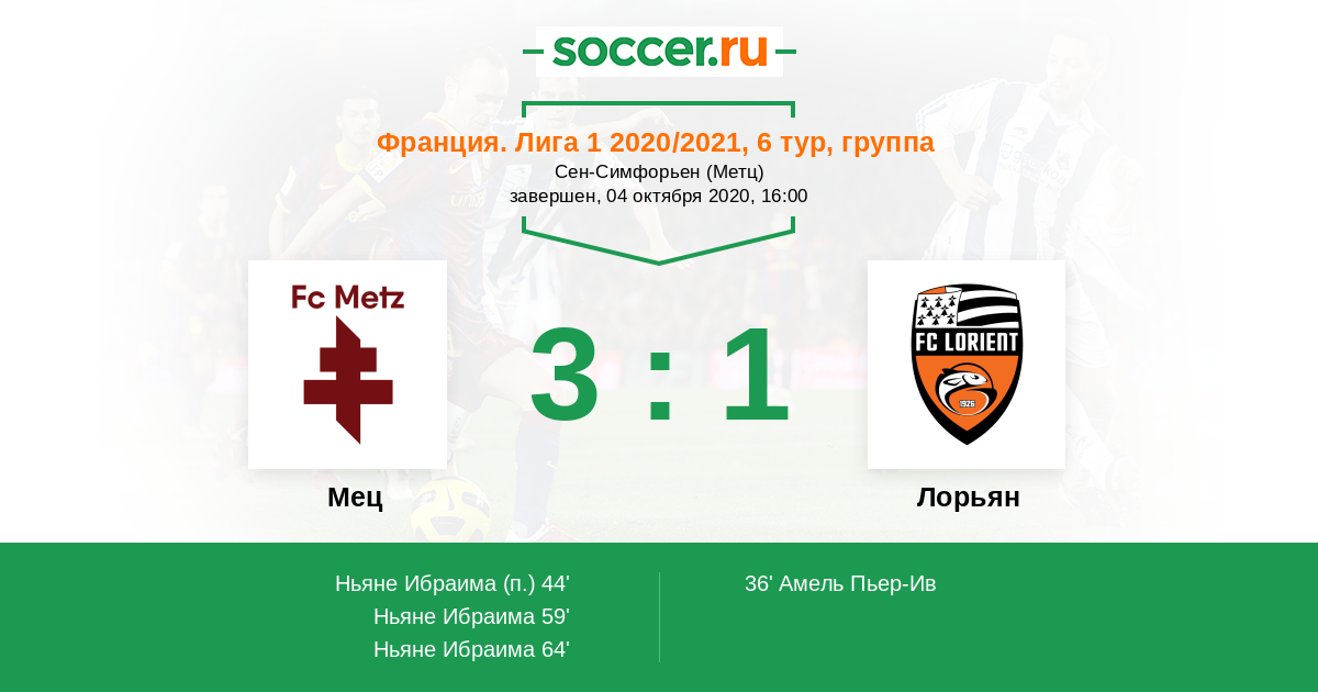 Мец - Лорьян: обзор матча 4 октября 2020