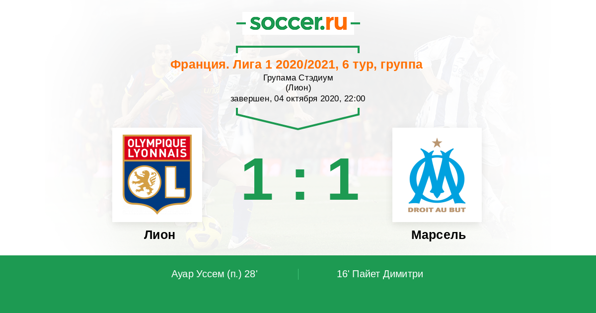 Лион - Марсель: обзор матча 4 октября 2020