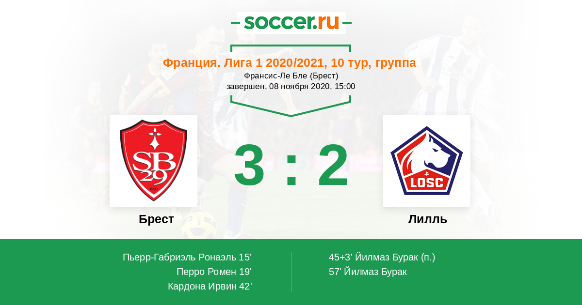 Брест - Лилль: обзор матча 8 ноября 2020